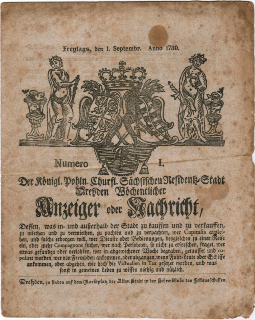 eine der ältesten und die zeitlich am längsten existierende Tageszeitung der Stadt (1730-1945).